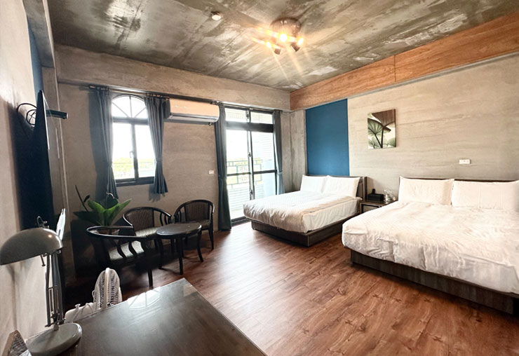 2樓合家歡四人房是家庭旅遊的理想選擇,提供兩張大床,適合四人入住,房間設計注重家庭的需求,色彩明亮且空間寬敞,讓全家人能舒適共處,房內附設獨立衛浴,並提供各式基本生活用品,讓您與家人能輕鬆享受溫馨的住宿體驗。